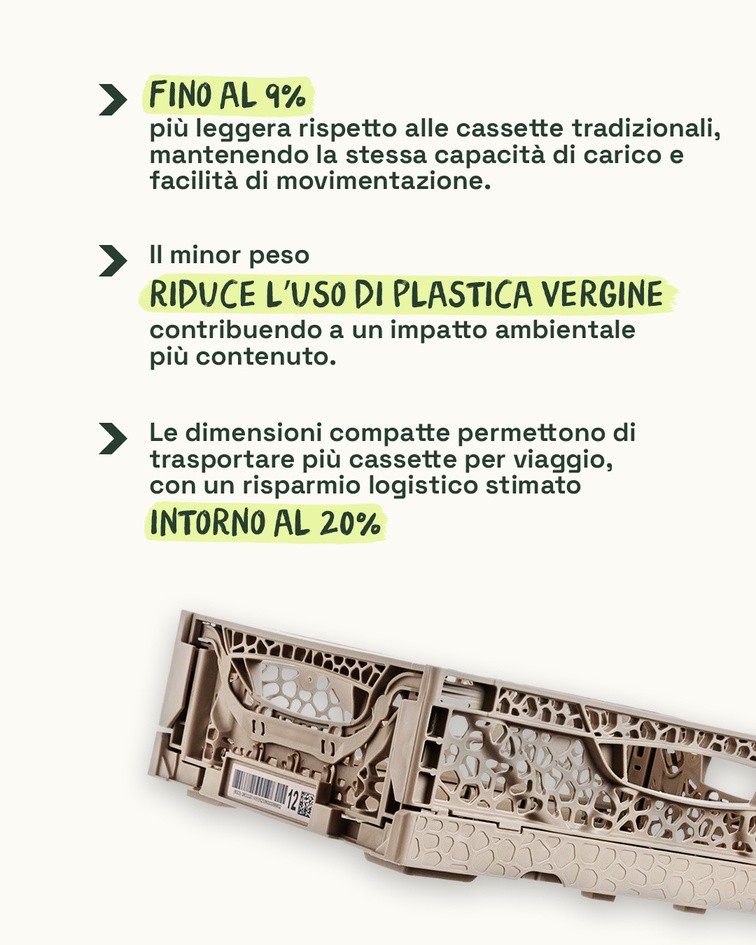 Più cassette trasportate, meno spazio occupato, meno costi di trasporto e stoccaggio.