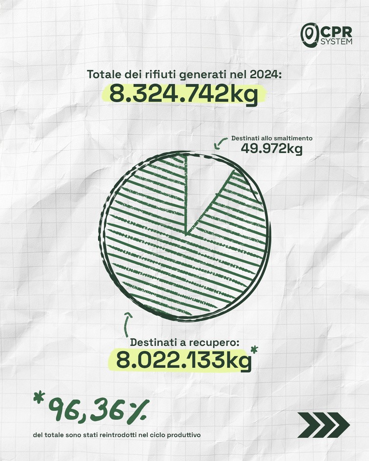 Il 2024 ci ha insegnato che ogni gesto conta e ogni scelta pesa. Ecco perché abbiamo trasformato oltre il 96% dei nostri rifiuti in soluzioni rigenerate, dando vita ai materiali e rendendo la filiera dei nostri soci più efficiente ma con un impatto ridotto sul pianeta.